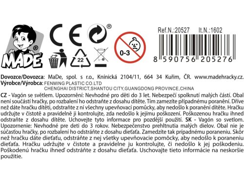 Cestovný vagón MaDe poteší každé dieťa, ktoré miluje vlaky. Vďaka svetelným efektom pôsobí hračka realisticky a pomáha rozvíjať detskú predstavivosť. S dostatočnou dĺžkou aj pre väčší počet pasažierov krásne doplnia akúkoľvek hernú súpravu MaDe. Vďaka plastovému prevedeniu vlak vydrží akúkoľvek jazdu a skvele padne do ruky.
