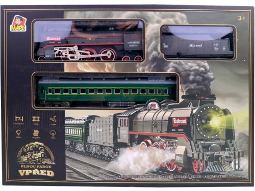 Vlaková súprava s parnou lokomotívou na batérii prináša deťom jedinečný zážitok vďaka svetelným a zvukovým efektom . Efekt pary , ktorá vychádza z komína lokomotívy, dodáva hre realistický nádych a zabaví malých rušňovodičov na dlhé hodiny. Montáž koľajníc je naozaj jednoduchá. Hračka je vhodná pre deti od 3 rokov .