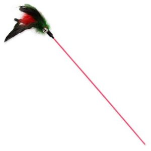 Prút s farebnými pierkami a rolničkou.
