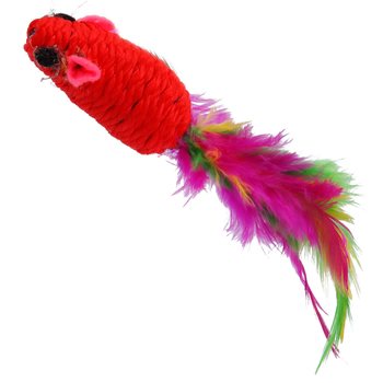 Bavlnená myška s pierkami. Hračka, ktorej Vaša mačka neodolá. Pierka lákajú k aktívnej hre.