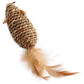 Atraktívna hračka pre mačky z morskej trávy s pierkami.