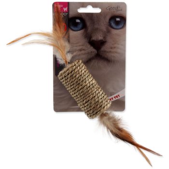 Atraktívna hračka pre mačky z morskej trávy s pierkami.