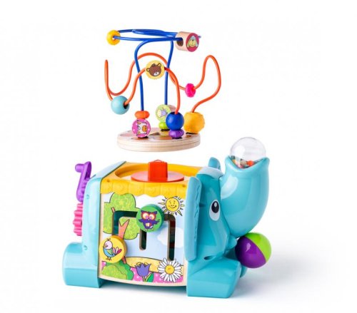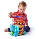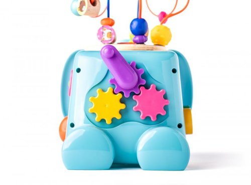 Didaktický slon značky Niny ponúka deťom nespočetné množstvo herných variantov. Farebné prevedenie zaujme každého malého objaviteľa. Zatiahnite za loptu v pusinke slona , pustite a sledujte korálky v chobotu. Kľučkou na zadočku rozpohybujete ozubené farebné kolieska . Na boku slona nájdete malé bludisko so sovičkou a vtáčikom. Na druhom boku je umiestnené počítadlo s farebnými korálkami a valček s notami. Na chrbte nosia slon nádherný labyrint , ktorý môžete odňať a deti sa s ním môžu hrať samostatne. S touto hračkou deti precvičujú nielen jemnú motoriku, trpezlivosť, presnosť, farby, ale aj súťaživosť.