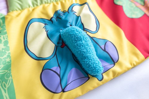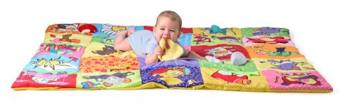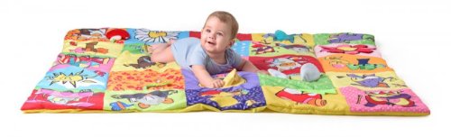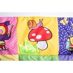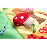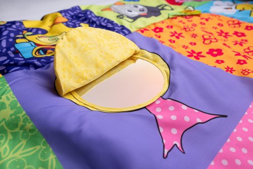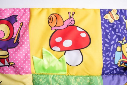 Priestranná hracia deka v štýle patchwork ponúka mnoho hracích aktivít, ktoré sú zakomponované do jednotlivých obrázkov. Okvetné lístky, uši psíka, chvostík mačičky aj zelený trs trávičky vydávajú po prepadnutí zvuk šuštiaceho papiera. Chobot slona a muchotrávka majú zabudované pískatko. Okvetné lístky zeleného hrkálky v tvare kvietku sú zároveň aj hryzátkom. Keď odklopíte korunu žltého stromu odhalíte bezpečnostné zrkadlo, v ktorom dieťa uvidí svoju tvár a bude naň s nadšením reagovať. Toto autorské dielo je registrované u Art&Copyright pod číslom 200-16-20-1 zo dňa 10.11.2020. Rozmery deky: 150 x 150 cm. Vek: 0+ | Video: https://www.youtube.com/watch?v=3IKPGRhapAA