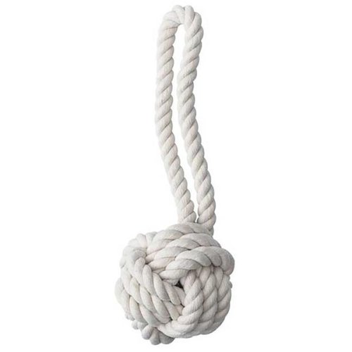 Bavlnené preťahovadlo pre psov spletené z pevných prírodných povrázkov do tvaru lopty je zakončené okom pre lepší úchop pri hre. Hodí sa na preťahovanie, aportovanie aj hryzenie. Bavlnené povrázky počas hry prirodzene čistia chrup a prispievajú tak k zdraviu zubov a ďasien. Dĺžka (cca): 30 cm Veľkosť: L Materiál: bavlna Farba: biela Upozornenie: Hračka nie je určená deťom. Na použitie iba pod dohľadom. Hračku pravidelne kontrolujte av prípade poškodenia prestaňte používať.