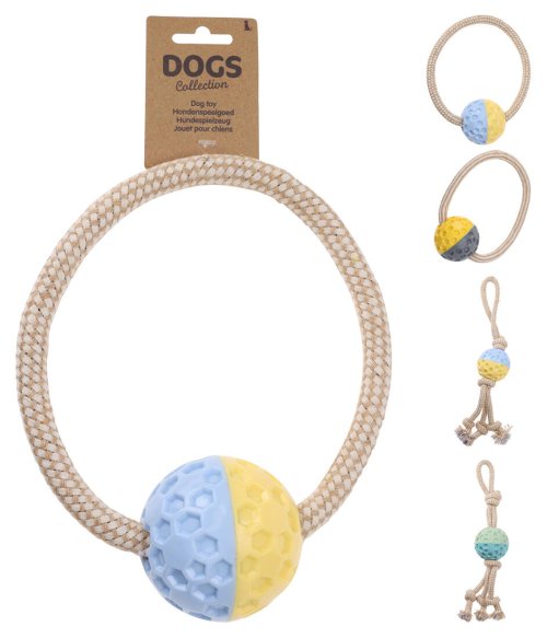 Hračka pre psa Loptička s lanom (40 x 8 x 8 cm / 19 x 21 x 8 cm) mix TPR / BAVLNA.