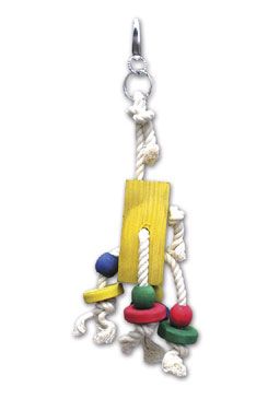 Hračka do klietok a voliér vyrobená z pevného a odolného materiálu proti okusu.