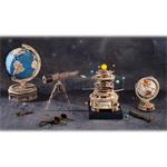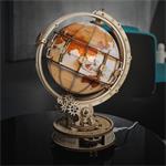 Vďaka stavebnici glóbusu značky Robotime z preglejky sa nestratíte vo svete, a to ani v noci. Prostredníctvom jeho stavby môžete dať oddýchnuť svoje mysle od každodenného zhonu, preveriť svoje zručnosti, trpezlivosť a schopnosť sústredenia. Výsledný model môžete využiť ako atraktívnu nočnú lampičku , pre tento účel je vo vnútri vybavený LED svetelným zdrojom s nízkou spotrebou , s nenápadným vypínačom a napájaním v podobe rozšíreného microUSB, či USB-A konektora . Glóbom je možné otáčať prostredníctvom čiastočne odhalenej a pútavo spracovanej sústavy prevodov. Na svojom obvode je opatrený aj mechanicky ovládanou lupou , s pomocou ktorej prečítate aj najdrobnejšie nápisy na jeho povrchu. Členitá konštrukcia je vyvedená v retro štýle , zdobia ju početné ornamenty, ale aj stupnice na určovanie zemepisnej polohy, alebo označenie časových pásiem . Skladačka je dodávaná v nezloženom stave, balená v krabici.