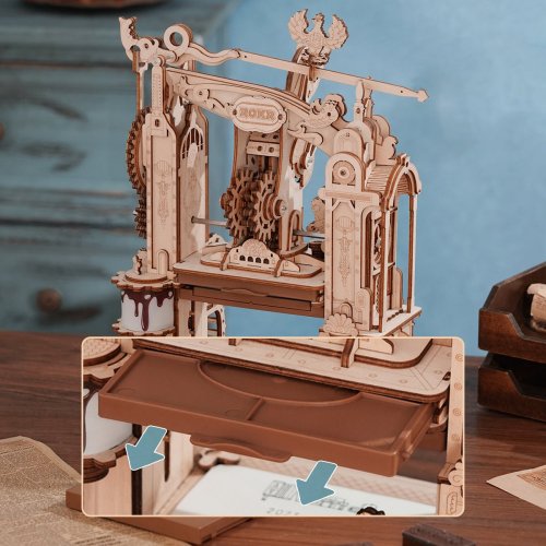 Vitajte v tlačovom závode Little Bear kde štipka atramentu urobí z vašich nápadov divy! Zatiahnite za páku a partia usilovných labiek sa vrhne do akcie! Aby medvedí kolegovia pri práci lepšie videli, je továreň vybavená o LED svetlá . Klasický tlačiarenský lis využíva pohyblivý princíp tlače, ktorý umožňuje ľubovoľne upravovať a bez námahy tlačiť správy a karty . Čierna tlačová kazeta, do ktorej sa pridáva atrament na vodnej báze, je znovu použiteľná – hranie a tlač s medvedíkmi je teda bez medzí. Vosk nie je súčasťou balenia (môžete napr. použiť obyčajné sviečky, voskovky, včelí vosk či iný podobný materiál).