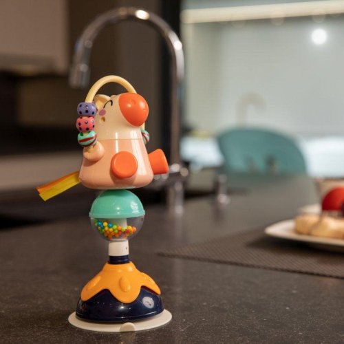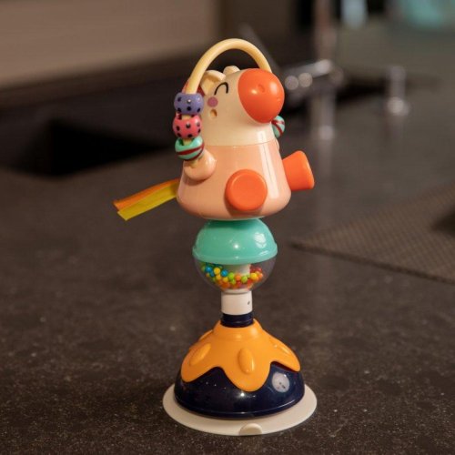 Plastová hračka s prísavkou, pomocou ktorej sa pripevní k jedálenskému pultíku, a tým sa zabráni tomu, aby ju Vaše dieťatko hádzalo na zem.