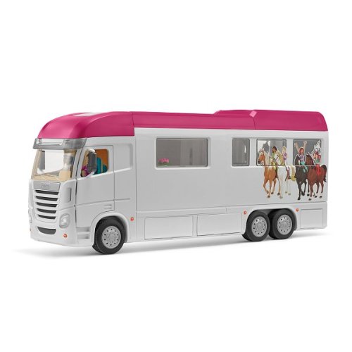 Patrí vaše dieťa medzi nadšencov do koní a zháňate pre neho vhodný darček? Prepravník koní od značky Schleich mu urobí radosť. Okrem mobilného domu v balení nájde 3 figúrky - Lisu a jej rodičov, 3 kone , jedného psa a širokú škálu vybavenia. Vozidlo má výsuvné časti a na jeho streche sa nachádza dokonca aj bazén .