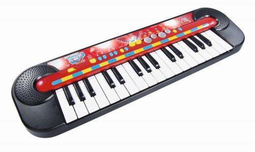 Urobte radosť svojim malým hudobníkom s pianom značky Simba . Vaše deti sa vyhrajú s 32 elektronickými klávesmi . Tí najmenší sa zabavia a starší sa môžu naučiť jednoduché pesničky. Detské piano poskytuje niekoľko funkcií. Vaše ratolesti si môžu pustiť až 8 demo piesní . Vyhrajú sa so 6 rytmami alebo vyskúšajú 4 zvuky bicích nástrojov . Aby sa hračka počas nečinnosti nevybíjala, automaticky sa vypne. Napája ju batérie, ktoré sú súčasťou balenia.