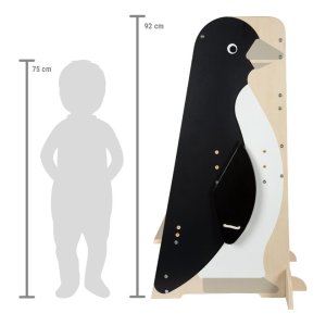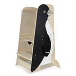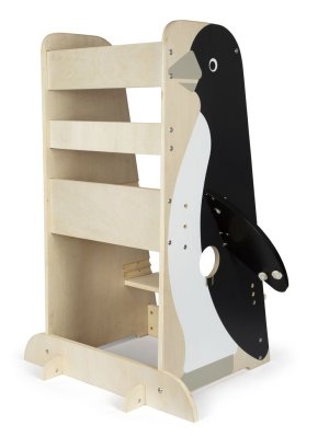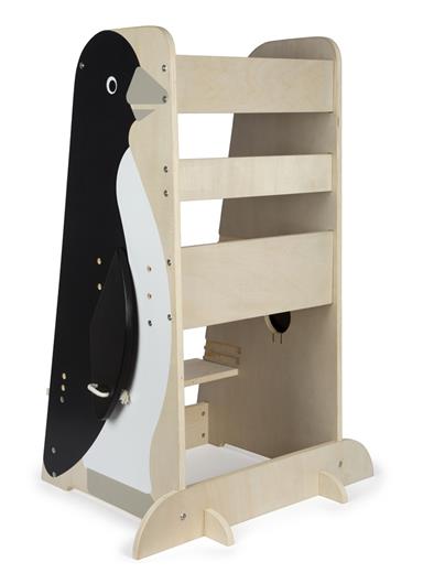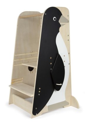 Učiaca veža 3 v 1 značky Small Foot funguje ako praktická viacúčelová stolička . Učiace veže umožňujú najmenším deťom byť v úrovni pracovnej dosky, vidieť všetko, čo robíte, a pracovať s vami. Ak chcete, aby vaše dieťa bolo súčasťou bežných činností pri kuchynskej linke, v kúpeľni alebo pri pracovnom stole, učiaca a pozorovacia veža v dizajne tučniaka sa určite stane vašim každodenným pomocníkom. Je robustný a stabilný a vďaka nej sa deti môžu zapojiť do všetkého diania v domácnosti v rovnakej výške ako dospelí. Má výškovo nastaviteľnú plošinu a schodík , porastie teda s dieťaťom, a zábrana zaistí jeho bezpečnosť. Skladacie krídla tučniaka poskytujú úložný priestor pre utierky, chňapky a ďalšie drobnosti. Pri používaní nenechávajte učiacu vežu v priestore, ale vždy vežu umiestnite stranou oproti schodíku k pevnej prekážke (kuchynská linka a pod.).
