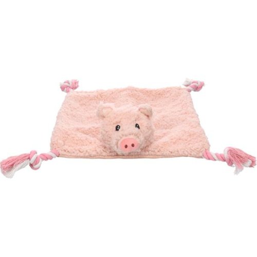 Plyšová hracia dečka Flamingo Poppo je vhodná pre psy všetkých vekových kategórií. Má štvorcový tvar s roztomilou hlavou prasiatka. Každý cíp štvorca je zakončený lanom s uzlíkom. Pre ešte väčšie potešenie z hry hračka navyše šuštia. Rozmery (cca): 40 × 40 × 8 cm Materiál: polyester (plyš) Farba: ružová Upozornenie: Hračka nie je určená deťom. Na použitie iba pod dohľadom. Hračku pravidelne kontrolujte av prípade poškodenia prestaňte používať.