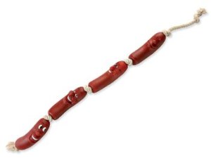 Hračka v tvare párku, vyrobená z vinylu. Vďaka materiálu, z ktorého je hračka vyrobená, sa ľahko udržuje, čistí a je pre Vášho maznáčika netoxická.