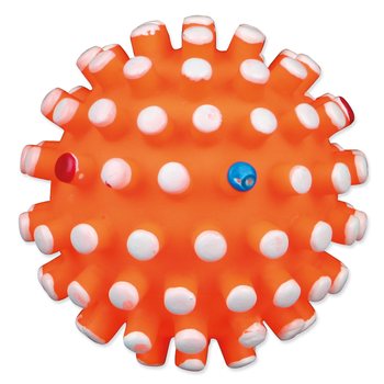 Hračka loptička s bodlinami so zvukom pre psov. Táto hračka zabaví psa na dlhú dobu. Loptička je vyrobená z vinylu. Zvuk hračky bude psa neustále lákať k hre. Bodlinky masírujú ďasná psa.