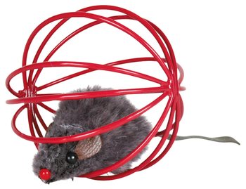 Hračka pre mačky myš v kovovej klietke.