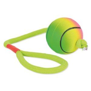 Hračka preťahovadlo s loptičkou pre psov. Loptička je z molitanu.