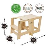 Veža má predĺžené nohy , ktoré zaisťujú väčšiu stabilitu. Na zadnej strane sa nachádza kriedová a magnetická tabuľa . Deti si na ňu môžu kresliť alebo k nej pripnúť obrázok. Veža však môžete zložiť a pretvoriť na stolík so stoličkou . Váš potomok ho využije na vyfarbovanie omaľovánok alebo napríklad hranie.