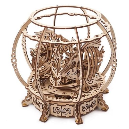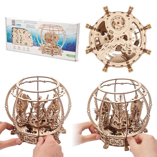 Pokiaľ ste vždy túžili po akvárku alebo inej podobnej ozdobe obývačky či detskej izby, budete s touto skladačkou spokojní. Po zostavení totiž získate mechanické akvárium s drevenými rybičkami. Natiahnite mechanizmus a sledujte, ako sa dvojica rýb rozpohybuje okolo krásnej vyrezávanej rastliny uprostred. Potešia vás aj rôzne detaily ako napríklad malý morský koník schovaný vo vodnej rastline.