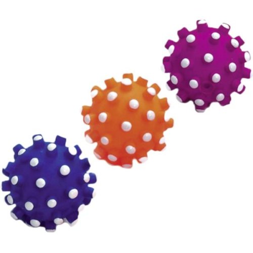 Vinylová hračka pre psov v podobe ježatej loptičky. Výstupky pri okusovaní masírujú ďasná a čistia zuby. Hračka obsahuje pískatko pre aktívnejšiu hru domáceho maznáčika. Rozmery: 6,5 cm