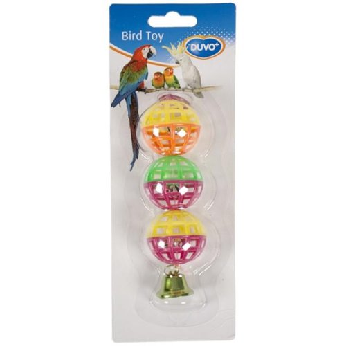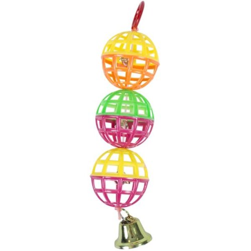 Vtáky majú radi farebné hračky. Tieto tri plastové loptičky so zvončekom obohatia prostredie v klietke a podnietia vtáky k aktivite. Rozmery: dĺžka 15cm, priemer loptičiek 4cm