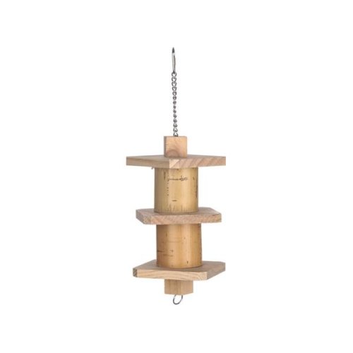Závesná hračka z borovicového dreva a bambusu je vhodná pre rôzne druhy papagájov. Do otvorov v dreve je možné ukryť maškrty a podporiť tak prirodzené hľadanie potravy, ozobávania a skúmania. Hračka stimuluje mentálnu aj fyzickú aktivitu a pomáha zahnať nudu. Vďaka nerezovej retiazke s kovovou karabínkou ju možno ľahko zavesiť do klietky alebo voliéry. Vyrobená z odolných a bezpečných materiálov. Rozmery (cca): 40 × 11,4 cm Materiál: borovicové drevo, bambus, kov
