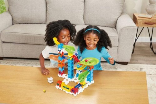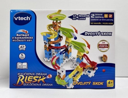 Postavte si s deťmi plastovú guličkovú dráhu Blesk - Dvojitý skok značky Vtech, s ktorou si užijete veľa zábavy. Sada obsahuje 47 dielikov a 5 guličiek . Ľahko ju napojíte na ostatné guličkové dráhy Vtech. Použite návod na zostavenie alebo sa nechajte uniesť vlastnou predstavivosťou. Stavebnica je určená pre deti od 4 rokov . Rozvíja ich predstavivosť a logické myslenie .
