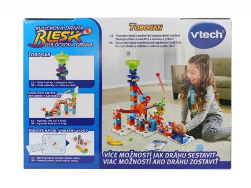 Postavte si s deťmi plastovú guličkovú dráhu Blesk - Tobogan značky Vtech, s ktorou si užijete veľa zábavy. Sada obsahuje 62 dielikov a 5 guličiek . Ľahko ju napojíte na ostatné guličkové dráhy Vtech. Použite návod na zostavenie alebo sa nechajte uniesť vlastnou predstavivosťou. Stavebnica je určená pre deti od 4 rokov . Rozvíja ich predstavivosť a logické myslenie .