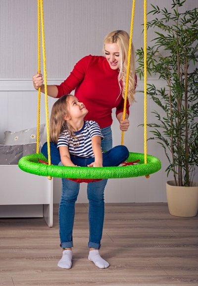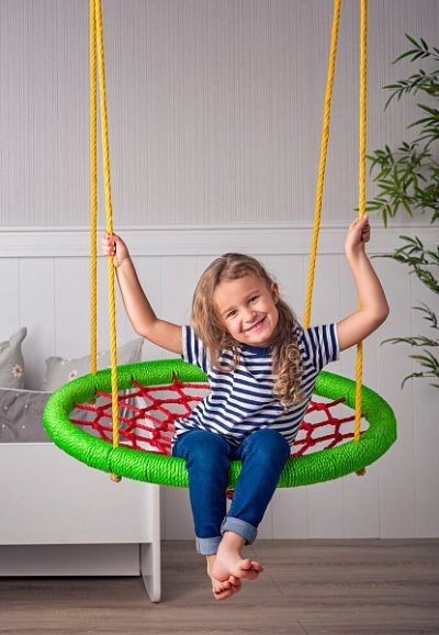 Hojdačka pre zábavu aj relaxáciu od značky Woody. Sedák je vypletený povrazovou sieťou, kovový rám je tiež chránený povrazom . Použitý materiál umožňuje komfortný odpočinok aj bezpečné hojdanie. Hojdačka sa môže používať iba v sede alebo v ľahu. Zavesuje sa za kovové krúžky , ktoré sú prevlečené na závesných lanách. Laná sú pevne zakončené zataveným uzlom v spodnej časti kruhu. Táto hojdačka je určená na vonkajšie použitie . Umiestnenie je vhodné na plochý, nie betónový, dláždený a asfaltovaný povrh, s minimálnym odstupom 2 m od možných prekážok, ako sú ploty, garáže, domy, previsnuté vetvy, prádelné šnúry alebo elektrické vedenia.