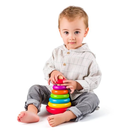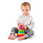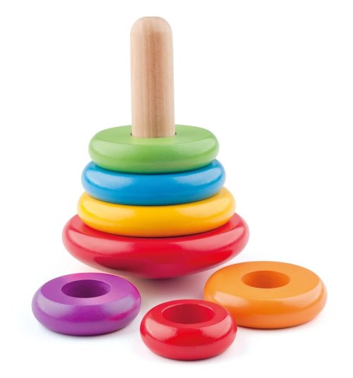 Urobte radosť svojmu najmenšiemu členovi rodiny a kúpte mu farebnú skladaciu pyramídu od značky Woody. Hračku tvorí tyčka, na ktorú sú navlečené rôzne veľké drevené krúžky . Dieťa sa ich snaží poskladať tak, aby vytvorilo pyramídu. Počas hrania si rozvíja motorické schopnosti. Hračka funguje dokonca aj ako káča . Stačí ju len roztočiť na tvrdej podlahe.