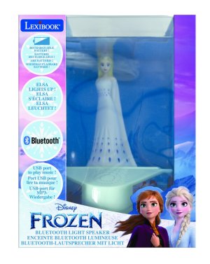 Bluetooth reproduktor Lexibook s motívom Ľadového kráľovstva ponúka deťom nielen kvalitný zvukový zážitok, ale aj vizuálne potešenie vďaka svietiacej figúrke Elsy.