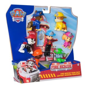 Multibalenie záchranárov Tlapkové patroly v hasičských uniformách.