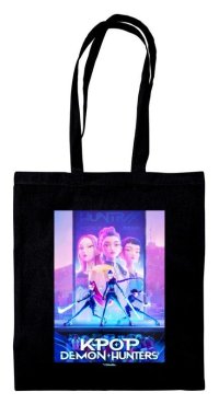Taška K-pop Demon Hunters je vyrobená z čierneho plátna a ponúka praktický a štýlový doplnok pre fanúšikov rovnomenného animovaného seriálu.