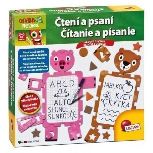 Náučná séria PRESCHOOL! Táto náučná hra od Carotiny obsahuje dve tabuľky, na ktoré je možné písať z oboch strán, a deti sa tak hravou formou učia čítať, písať a maľovať.