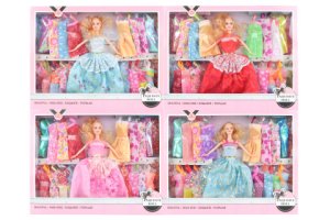 Plastová bábika o veľkosti cca 29 cm a 20 náhradných farebných šiat.
