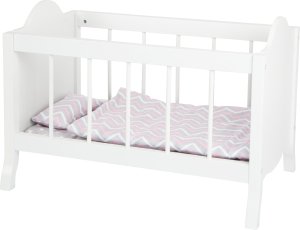 Postieľka pre bábiky s výškou maximálne do 47 cm, obojstranná prikrývka, vankúšik, zábrana ako ochrana pred pádom bábiky, výroba z masívneho dreva, krásny design.