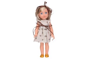 Bábika bez zvuku s mäkkým látkovým telom as vláskami po celej hlave, podobajúce sa malej slečne.