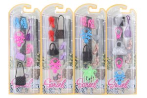 Sada doplnkov pre bábiky. Balenie obsahuje 2 páry topánok, 2 kabelky a 3 náhrdelníky.