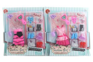 Šatičky na bábiku s doplnkami (3 kabelky, 4 páry topánok, okuliare, atď.).