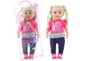 Bábätko s doplnkami. Bábätko po vložení batérií vydáva zvuky a ciká.