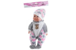 Bábätko s mäkkým telíčkom. Po stlačení telíčka začne bábätko vydávať zvuky (smiech, plač, mama, tata).