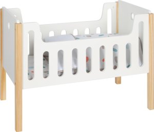 Rozmery: 50x28x35 cm Vek: 3 + Materiál: drevo, látka Obsahuje: 1 posteľ, 1 prikrývku, 1 vankúš