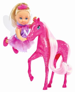 Bábika Evička ako princezná s kúzelným poníkom sa trblietavou hrivou.