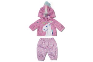 Kúzelný jednorožčí outfit s trblietavými detailmi a farebným motívom prináša do hry s bábikou fantáziu a radosť z prezliekania.