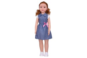 Mäkká látková bábika Anežka s blonďavými vlasmi, ktorá vie rozprávať a spievať v češtine.