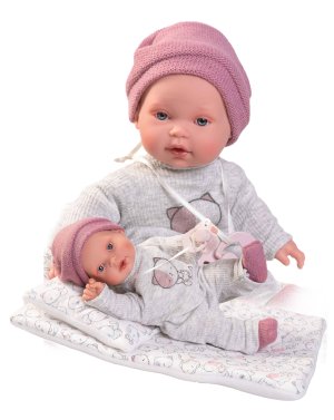 Hovoriace bábätko s mäkkým látkovým telom, ktoré po zatlačení na hrudník začne hovoriť „mama“, „papa“ a vydávať reálny zvuk plačúceho bábätka.