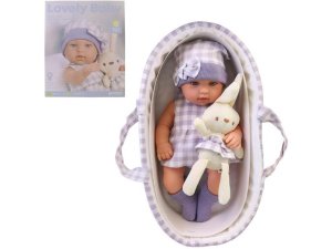Bábika s králikom, fialové oblečky, výška bábiky 33 cm, vyrobená z bezpečného plastu, vhodné od 3 rokov, balenie window box.