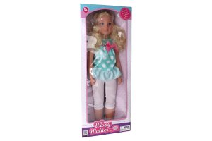 Chodiaca bábika s mašľou. žmurkajúce oči.