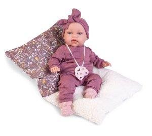 Hovoriaca a plačúca bábika (po vybratí poistky ihneď funkčná) s mäkkým látkovým telom as vláskami po celej hlave.